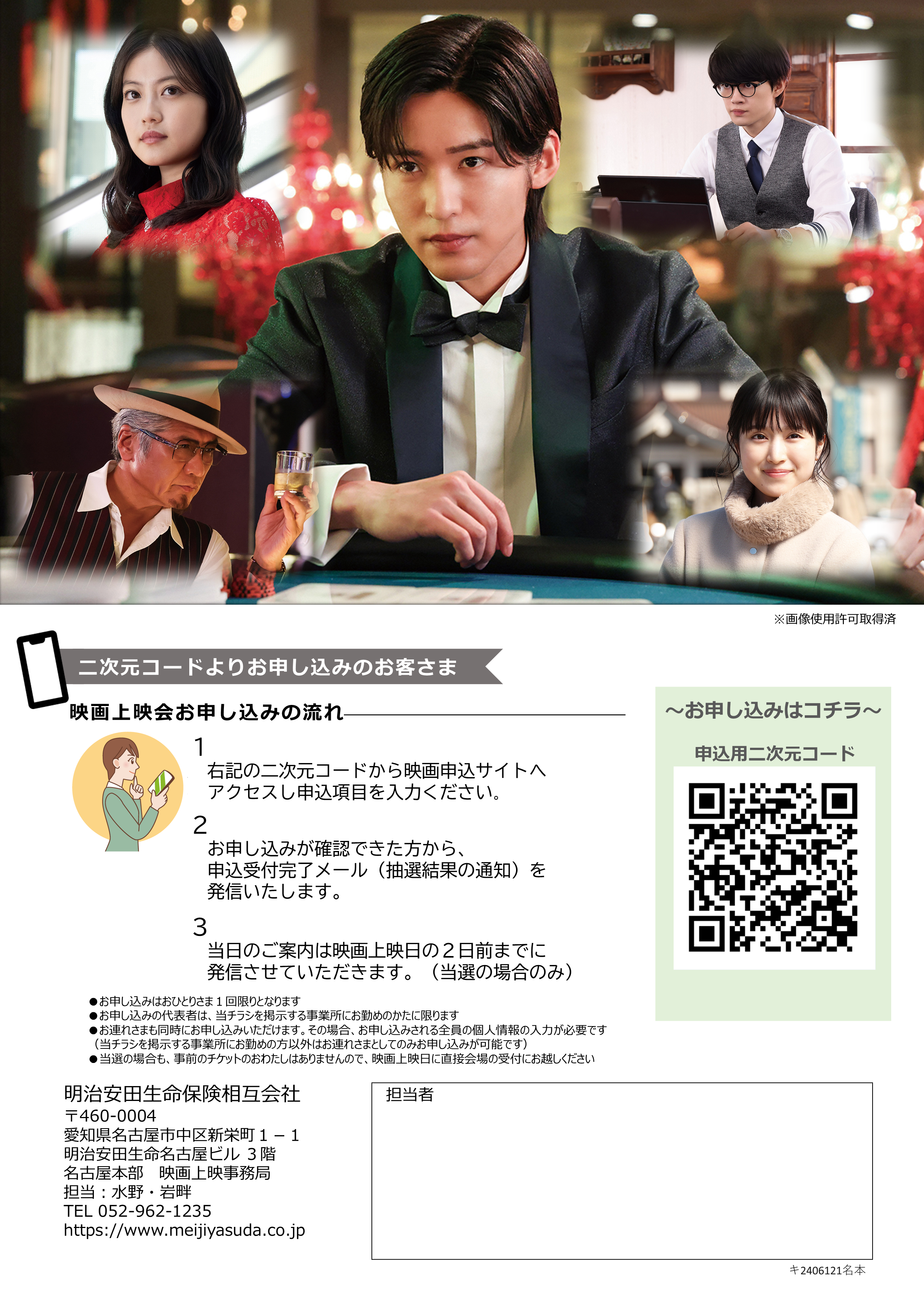 ・当日のご案内は映画上映日の2日前までに発信させていただきます。(当選の場合のみ)