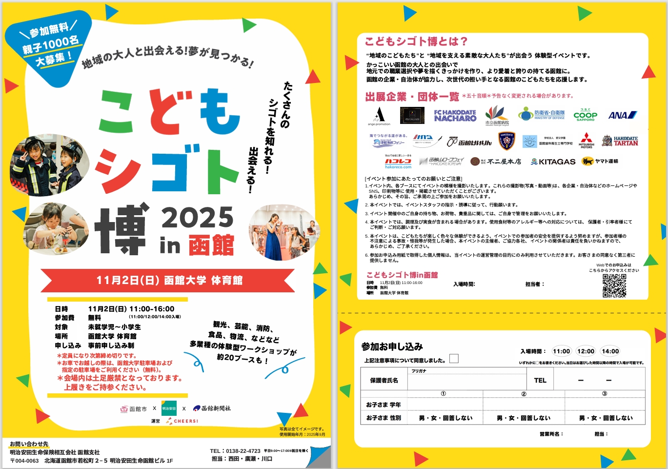 TEL: 0138-22-4723(平日9:00~17:00 ※祝日除く)こどもシゴト博担当