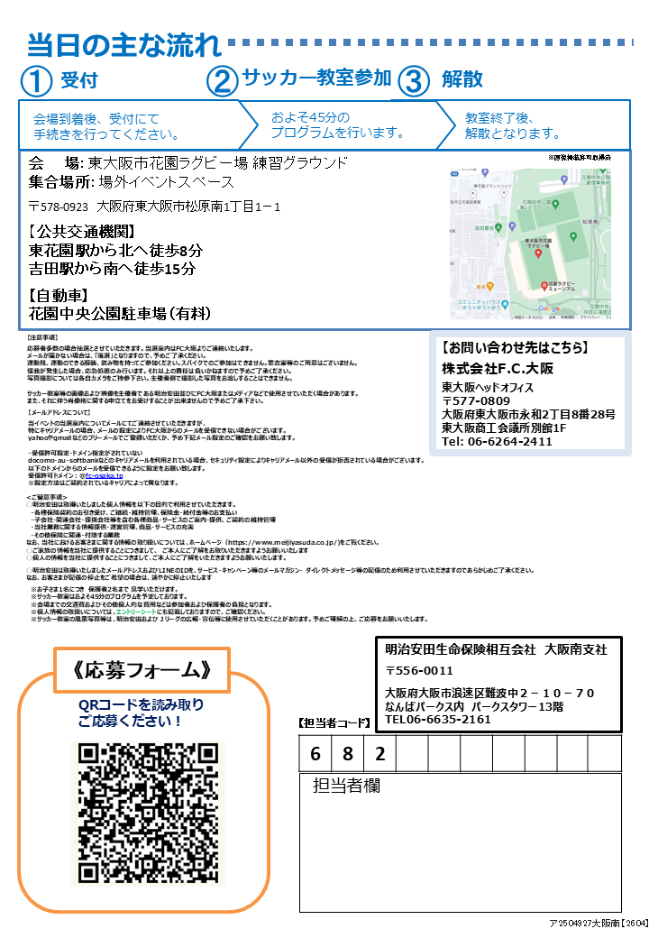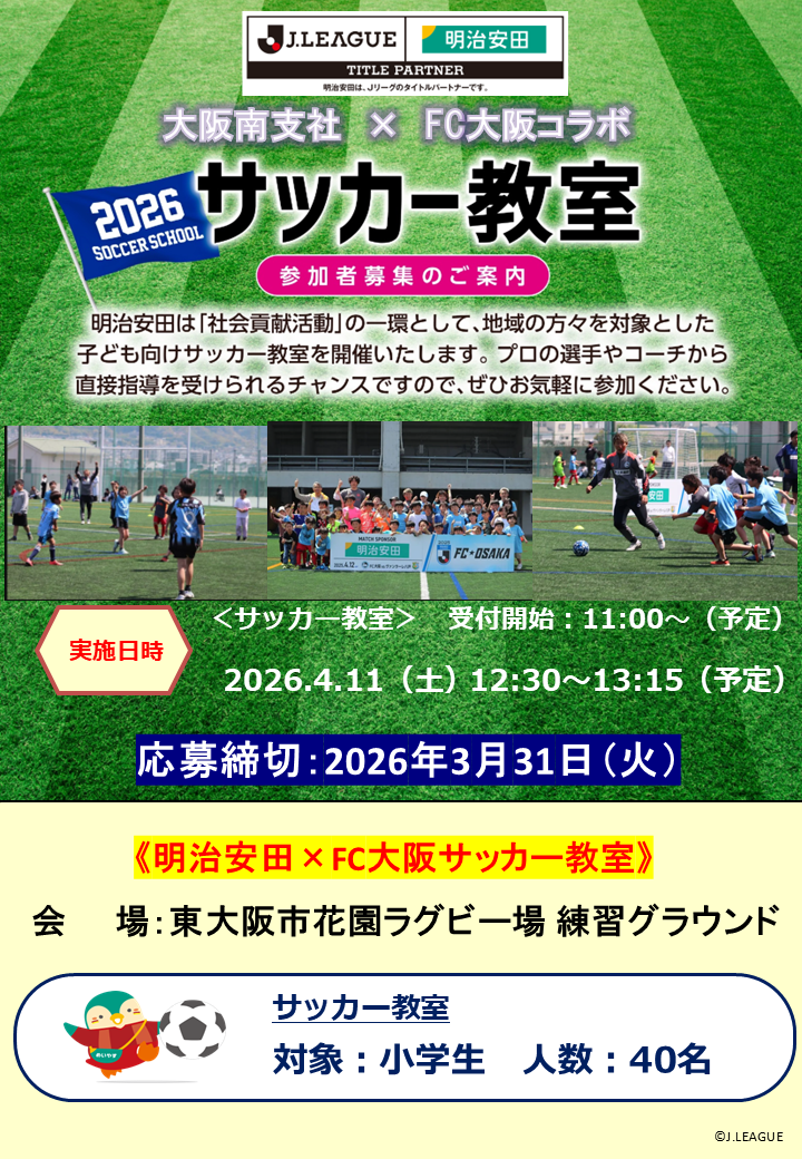 ※サッカー教室等の画像および映像を主催者である明治安田並びにFC大阪またはメディアなどで使用させていただく場合があります。