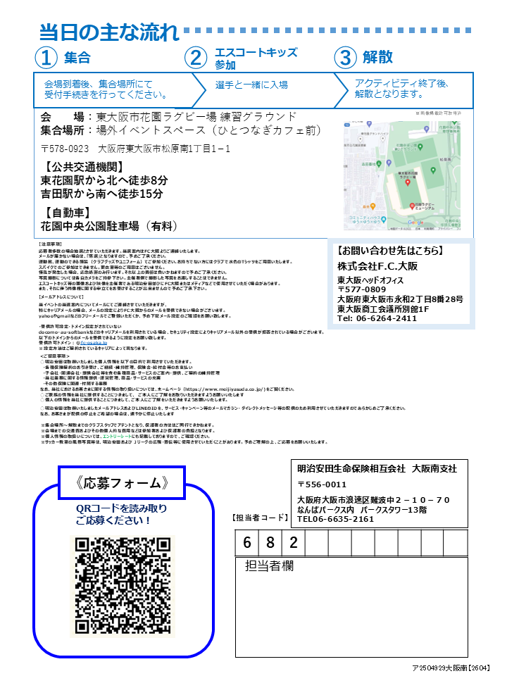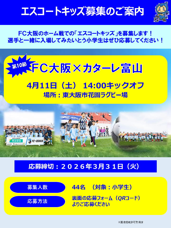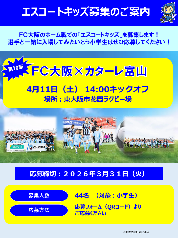 ※エスコートキッズ等の画像および映像を主催者である明治安田並びにFC大阪またはメディアなどで使用させていただく場合があります。